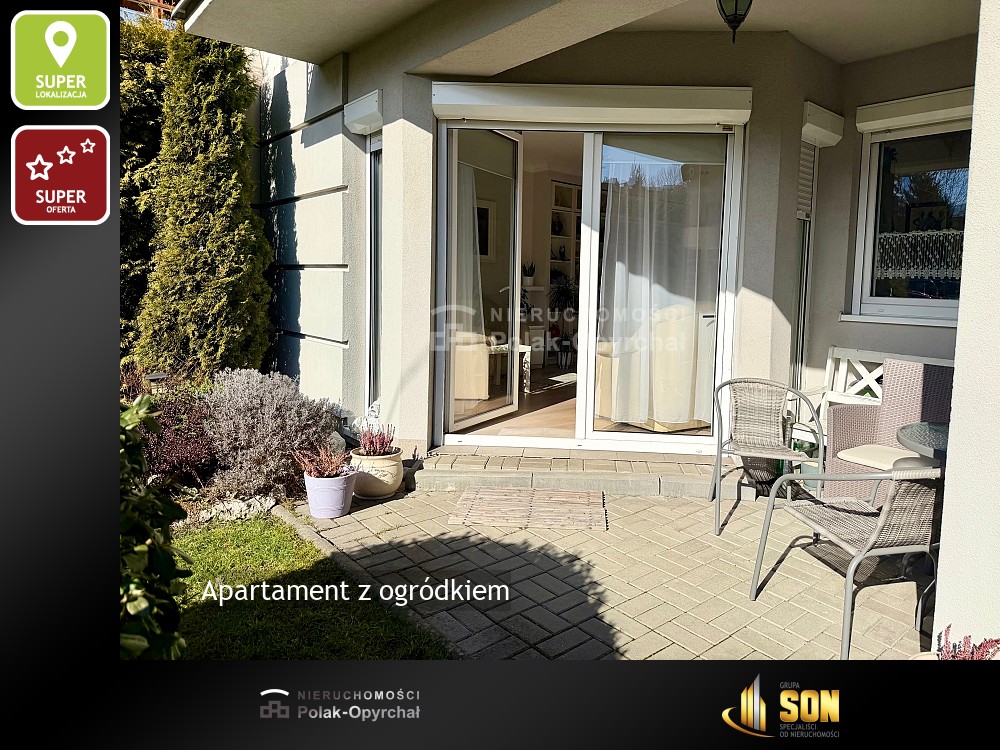Słoneczny apartament o powierzchni 58,42 m2,  położony na parterze kameralnego 4- lokalowego budynku mieszkalnego.