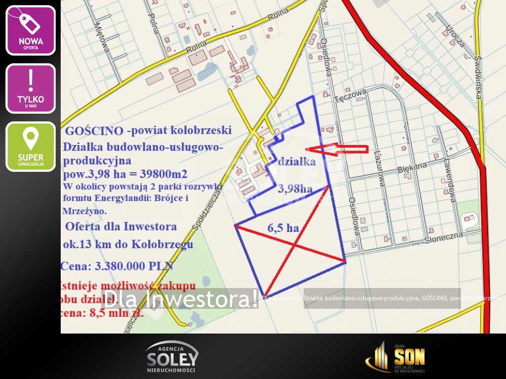 Do sprzedaży atrakcyjna działka budowlano-usługowo-produkcyjna, położona w mieście Gościno, powiat kołobrzeski.