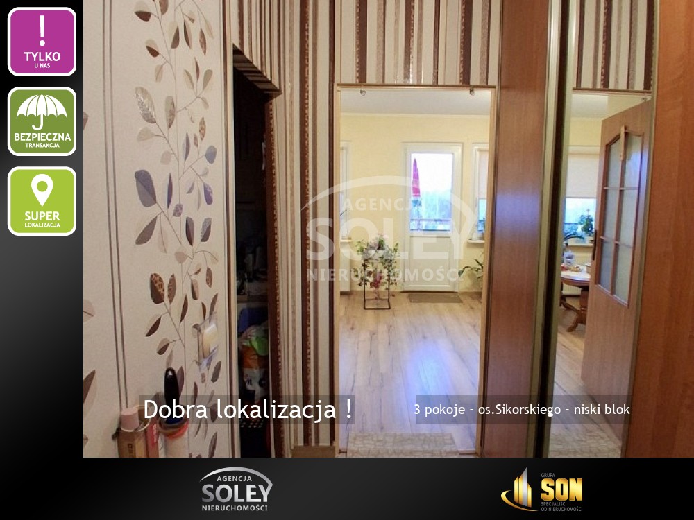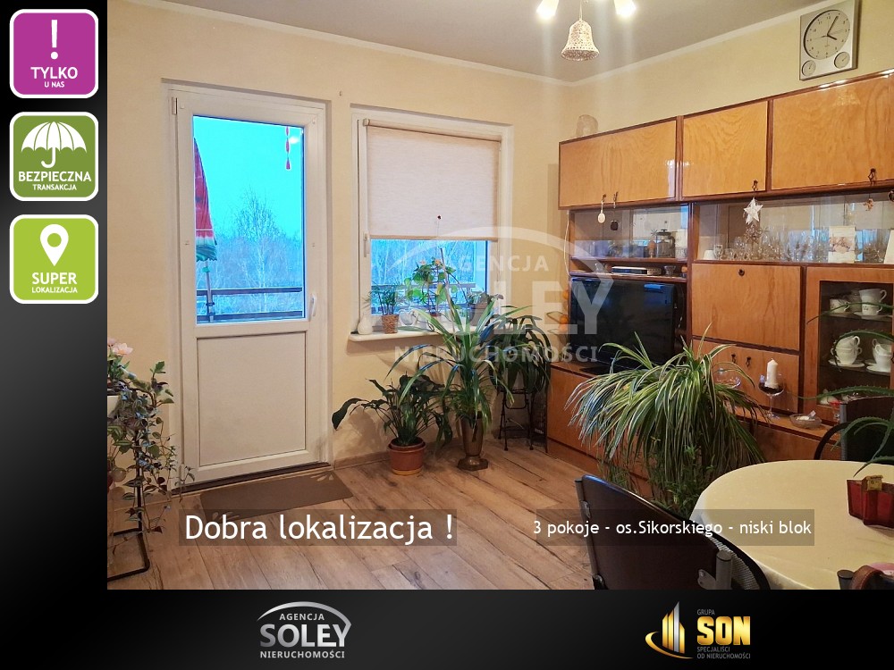 Oferujemy Państwu do sprzedaży bardzo dobrze zlokalizowane mieszkanie, typu M-4, 3-pokojowe, położone na osiedlu Sikorskiego w Żorach, o powierzchni użytkowej 55,30 m2.