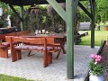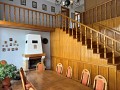 Podłogi na piętrze drewniane, drzwi wewnętrzne i boazeria z drewna dębowego.