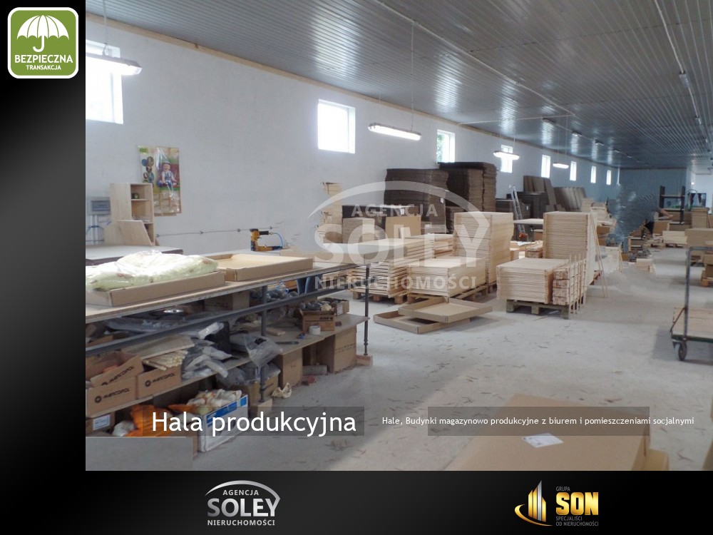 Budynki używane są do produkcji meblarskiej, nowoczesna instalacja elektryczna jest solidna i bezpieczna. Niedalekie sąsiedztwo tartaku - ok. 4 km.