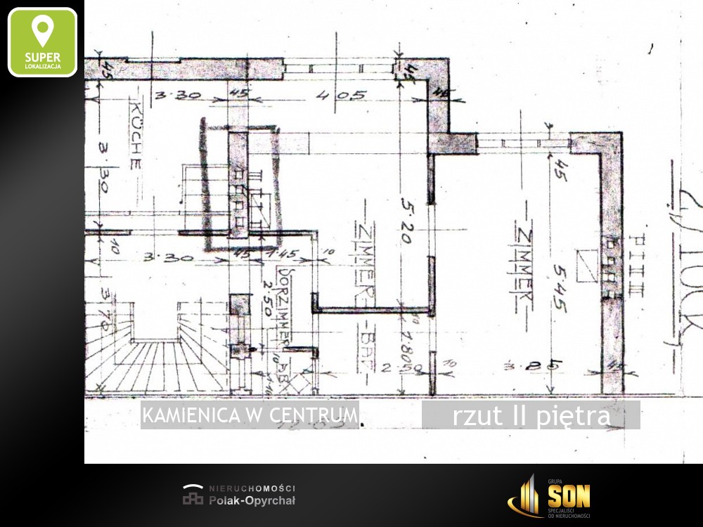 Budynek o powierzchni użytkowej około 250 m2 ( trzy mieszkania z niezależnym wejściem z klatki schodowej), wysokie piwnice.