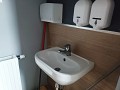 Składa się z głównej sali obsługi, odrębnego pomieszczenia z umywalką, zaplecza socjalnego oraz dwóch osobnych toalet.