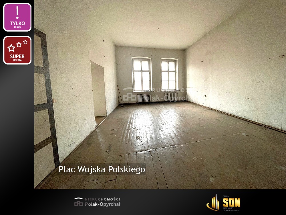 Niepowtarzalna lokalizacja - Plac Wojska Polskiego po modernizacji, pięknie zagospodarowany, na którym odbywają się miejskie imprezy plenerowe.