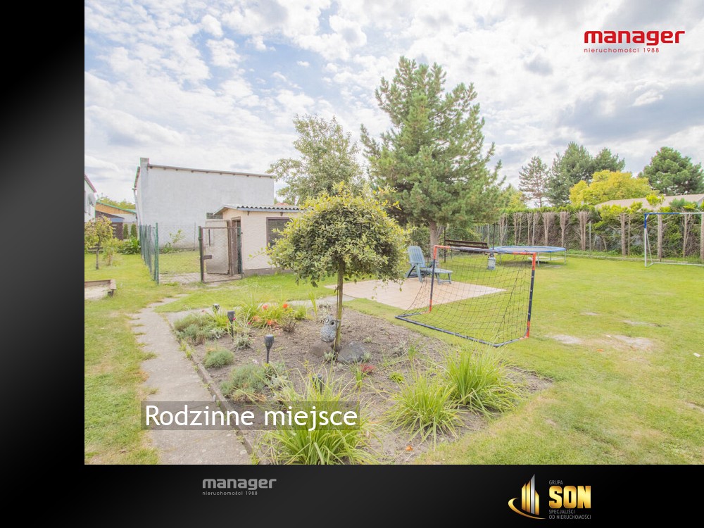 Dom o powierzchni użytkowej ok. 181,06 m2 posadowiony jest na dużej i zadbanej działce. Jej powierzchnia to ok. 1297 m² – idealna do odpoczynku w gronie rodziny i przyjaciół, a także do własnej aranżacji, np. z ogrodem warzywnym, placem zabaw dla dzieci czy altaną.