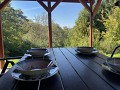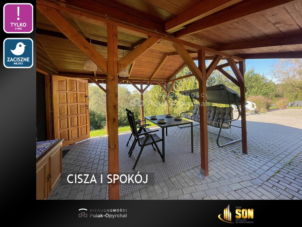 Na działce znajduje się drewniana altana, z nowym, dużym, zadaszonym tarasem oraz małą architekturą.