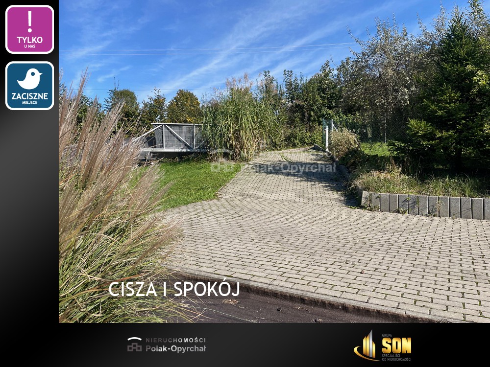 Działka o powierzchni 2403 m2, południowa ekspozycja, ogrodzona, z przesuwną bramą wjazdową, z wybrukowanym podjazdem i parkingiem.