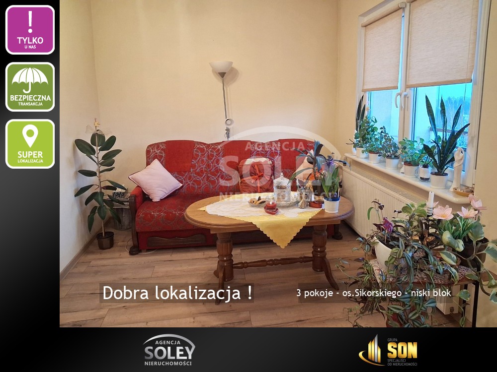 Oferujemy Państwu do sprzedaży bardzo dobrze zlokalizowane mieszkanie, typu M-4, 3-pokojowe, położone na osiedlu Sikorskiego w Żorach, o powierzchni użytkowej 55,30 m2.
