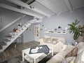 Funkcja piętra: duża jadalnia z otwartą kuchnią, przytulny pokój dzienny z niewielką antresolą, dwie sypialnie, łazienka.