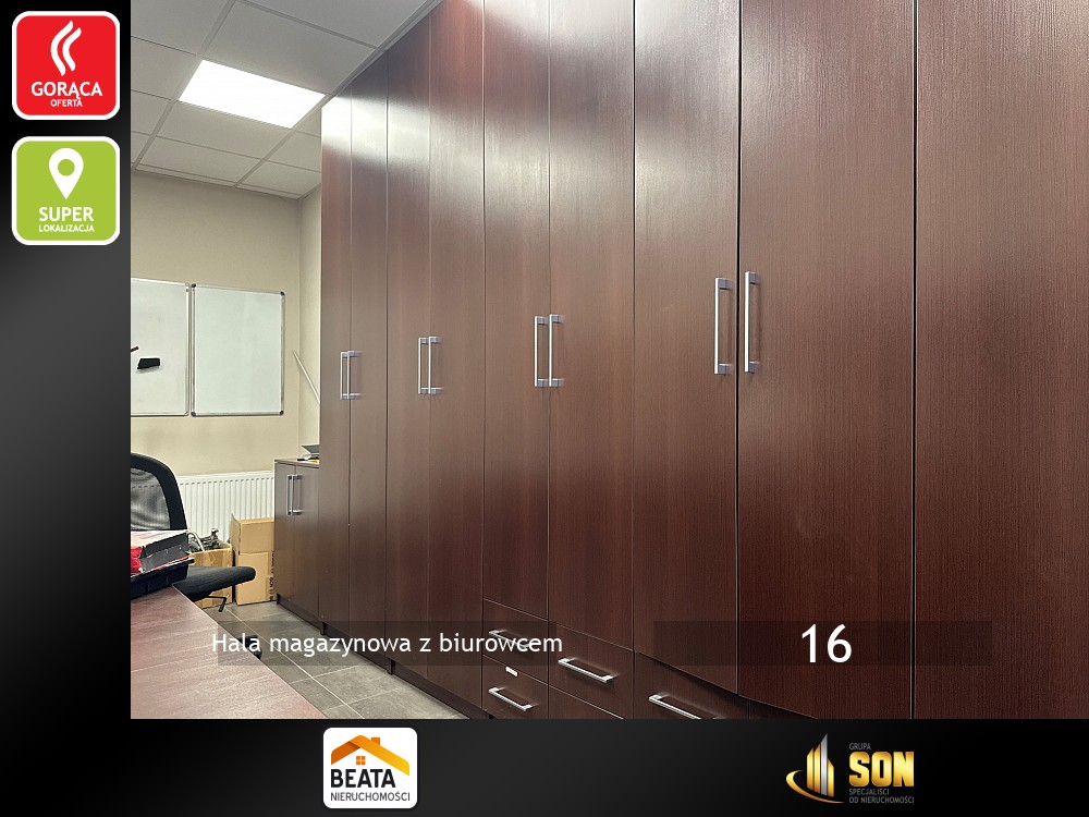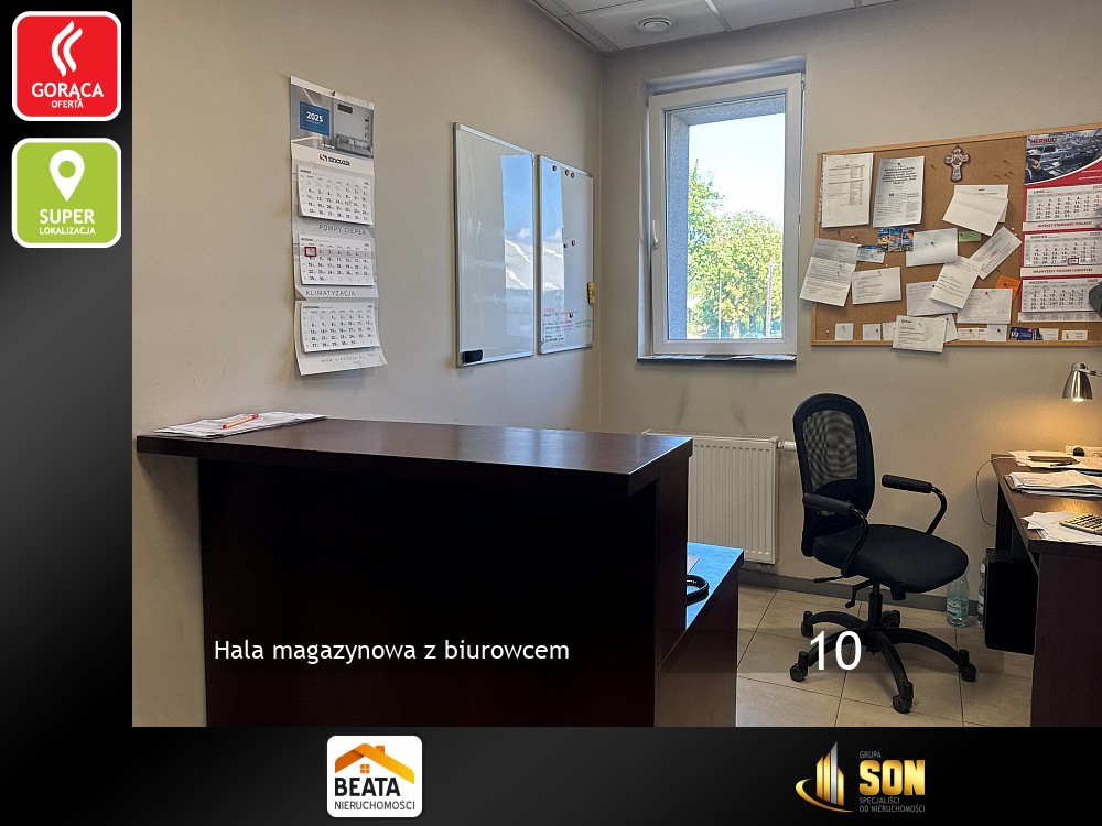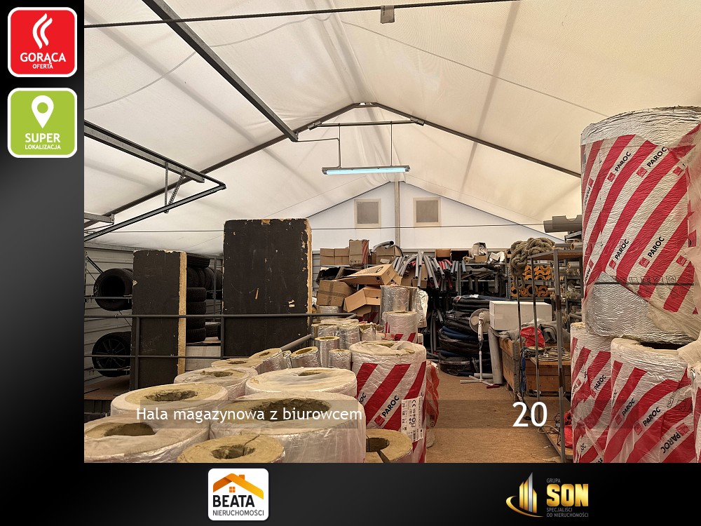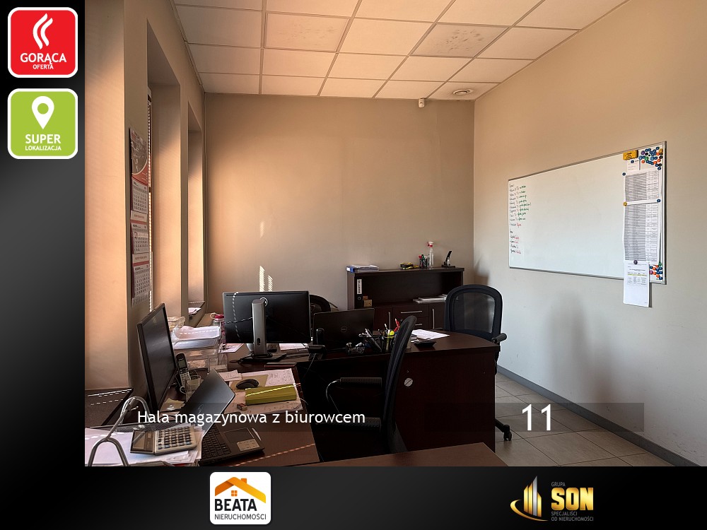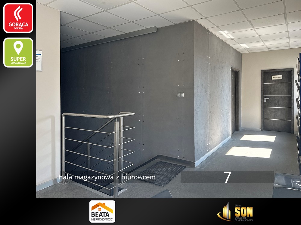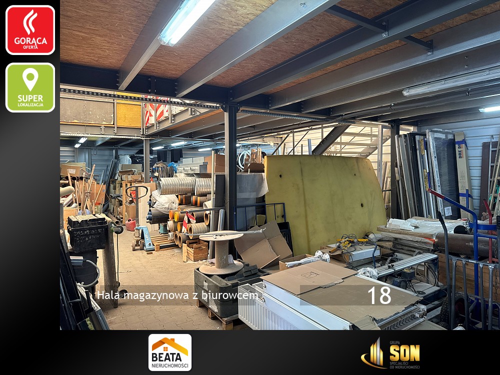 Razem z halą obiekt tworzy budynek biurowo-usługowy na działalność handlową i usługową . Piętrowy, murowany, po termomodernizacji, dach kryty papą termozgrzewalną i ocieplony styropianem o grubości 30cm. Powierzchnia użytkowa około 250mkw. Na parterze znajduje się lokal handlowo-usługowy do adaptacji, kotłownia, szatnie i toalety.