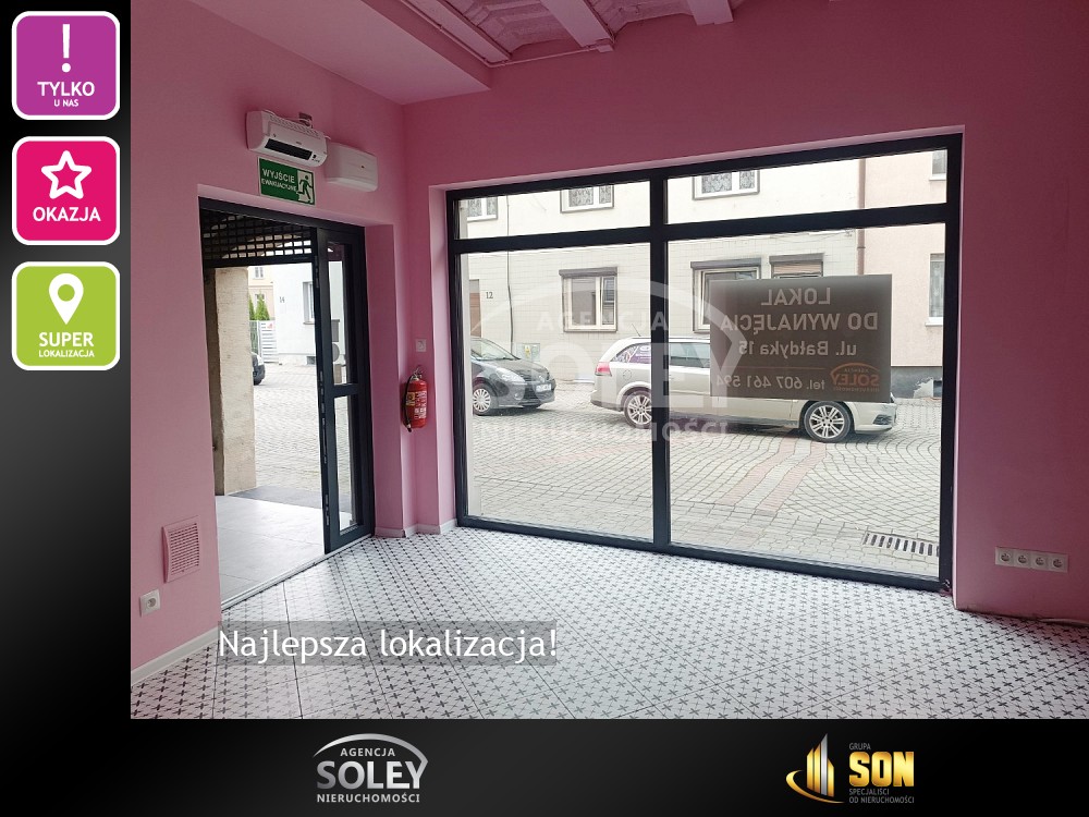 Lokal znajduje się w bliskiej odległości od płyty Rynku - ok.100 m - na ul. Bałdyka 15 - położony na parterze nowoczesnej - 3 segmentowej - kamienicy, w której znajdują się również prowadzące działalność inne lokale usługowo-handlowe.