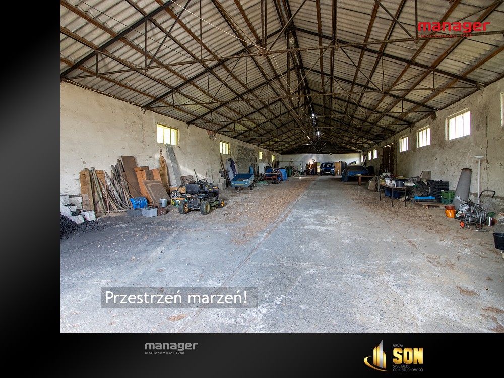 Na terenie nieruchomości znajdują się dwie solidne, murowane hale, które doskonale sprawdzą się zarówno w działalności produkcyjnej, magazynowej, jak i rolnej.