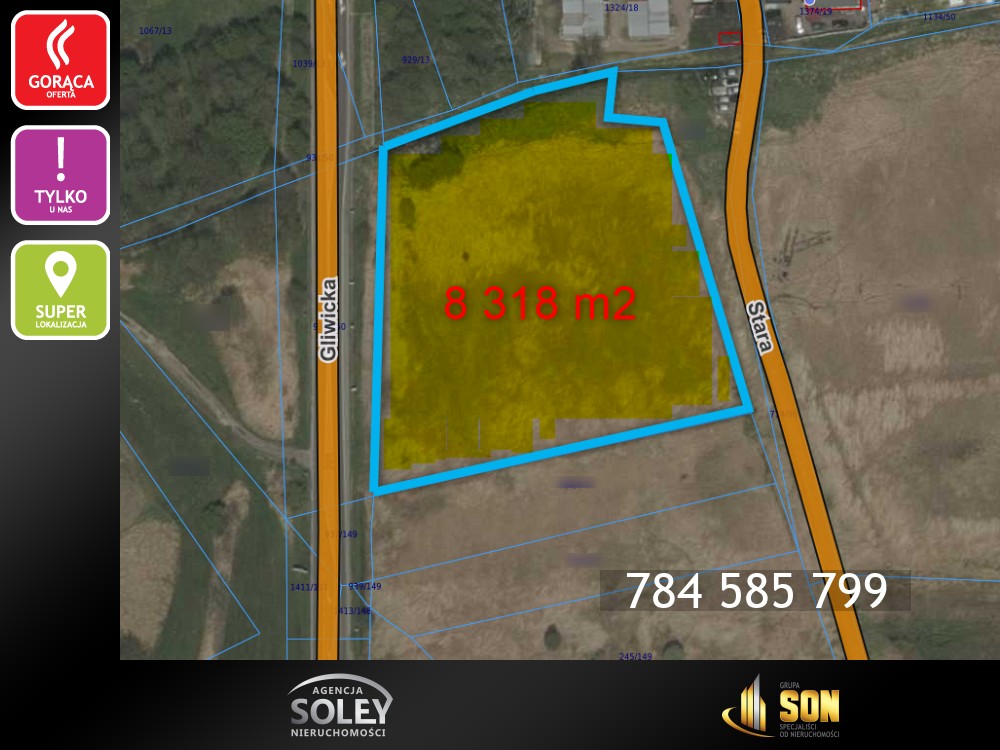 przy ulicy Gliwickiej, o powierzchni 8 318 m2.