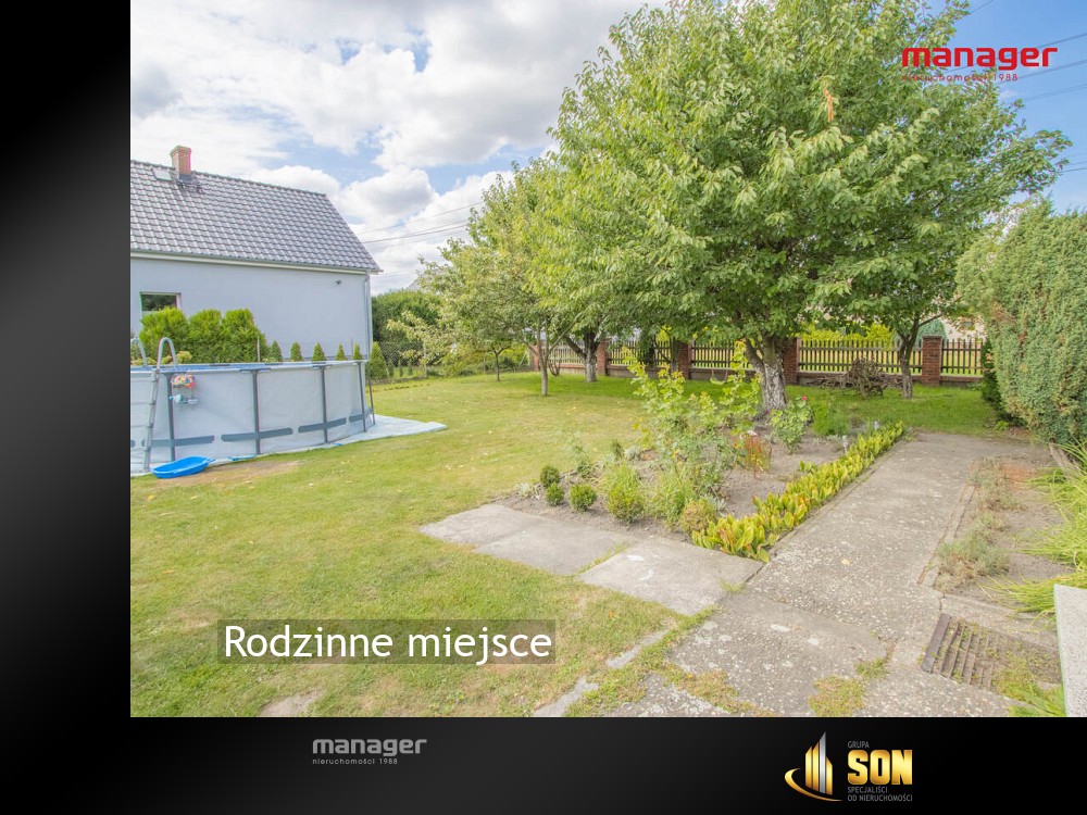 Dom o powierzchni użytkowej ok. 181,06 m2 posadowiony jest na dużej i zadbanej działce. Jej powierzchnia to ok. 1297 m² – idealna do odpoczynku w gronie rodziny i przyjaciół, a także do własnej aranżacji, np. z ogrodem warzywnym, placem zabaw dla dzieci czy altaną.