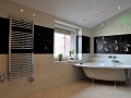 - kominek z wkładem Spartherm, ściany z marmuru, pólki z granitu.