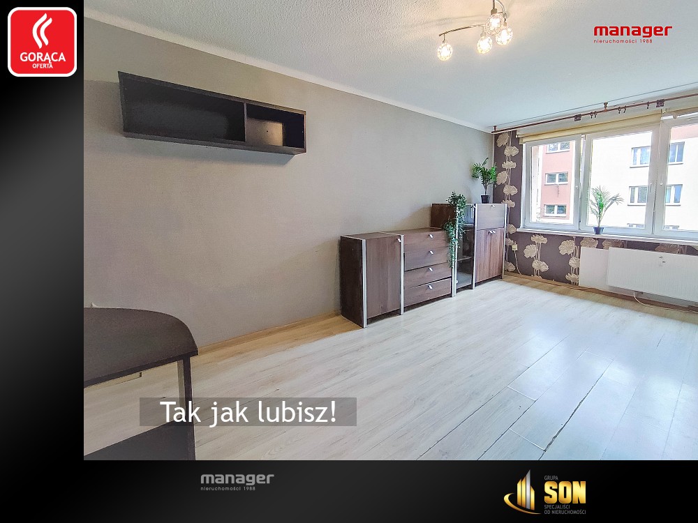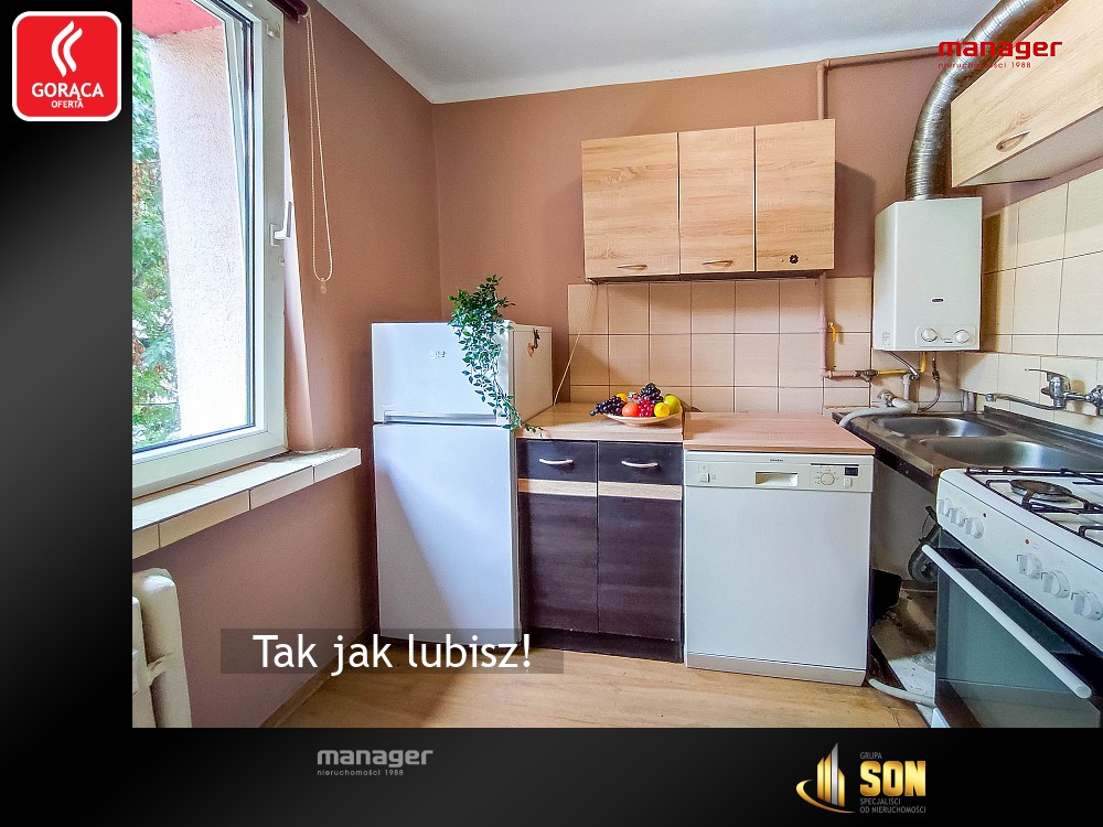 Mieszkanie jest jasne i ciche, z oknami wychodzącymi na spokojną okolicę. Idealne dla singla, pary lub jako inwestycja pod wynajem.