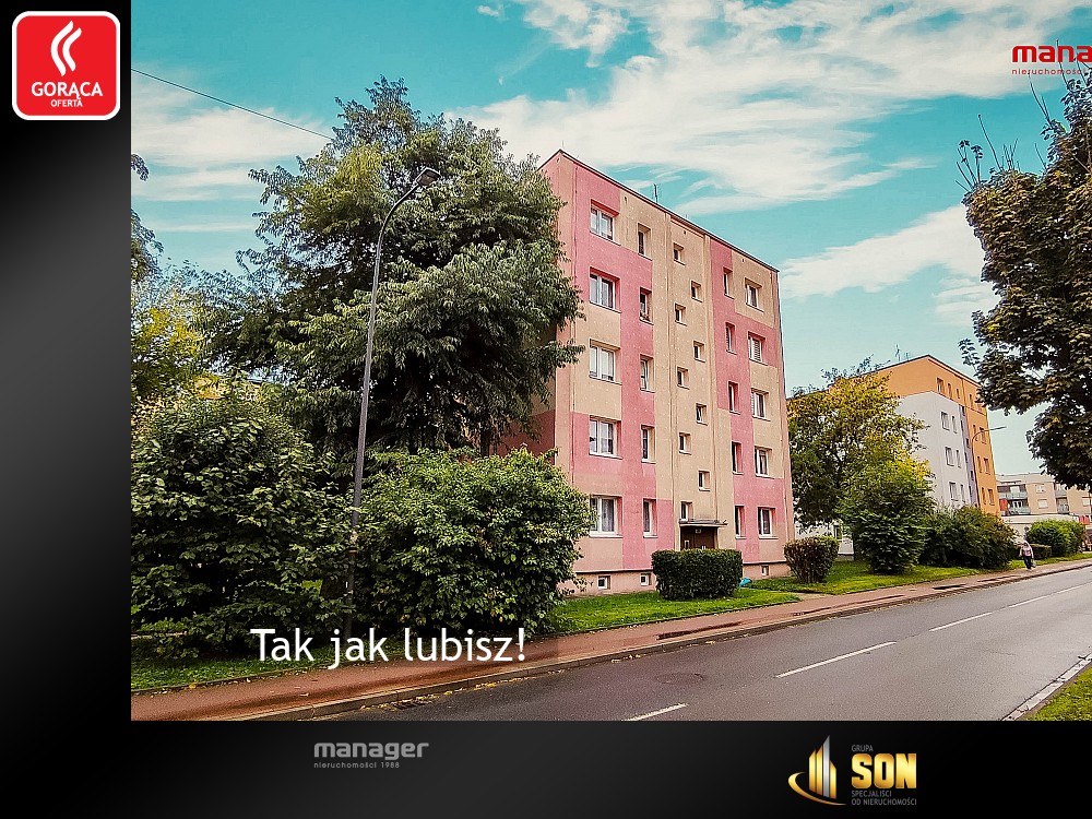 Mieszkanie znajduje się na 2. piętrze w czteropiętrowym, zadbanym bloku. Budynek położony jest w dobrze skomunikowanej części miasta – w pobliżu sklepy, przystanki komunikacji miejskiej oraz tereny zielone.
